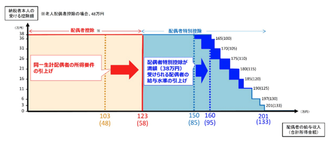 また、配偶者特別控除の所得要件についても改正があり、従来は収入が150万円から段階的に控除額が減少していましたが、令和7年度からは160万円に引き上げられます。