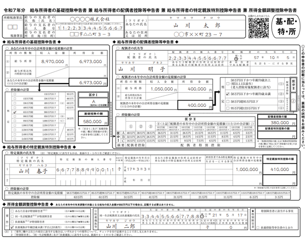 給与所得者の基礎控除申告書 兼 給与所得者の配偶者控除等申告書 兼 給与所得者の特定親族特別控除申告書 兼 所得金額調整控除申告書